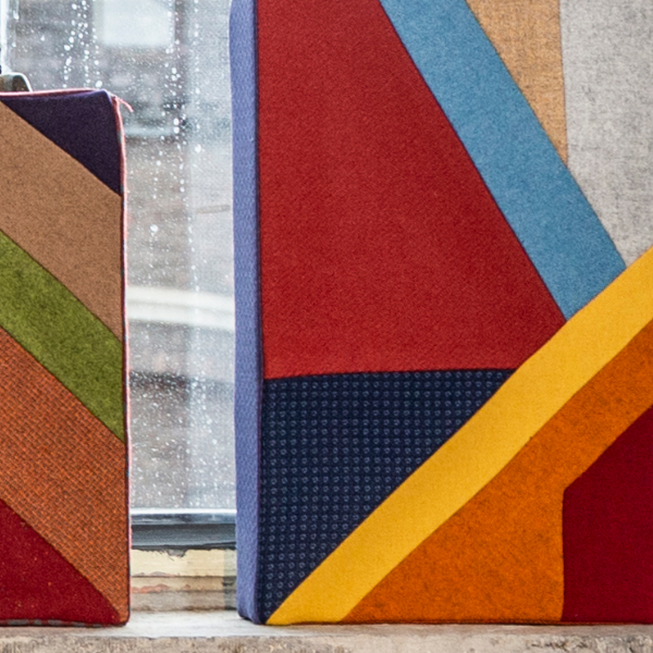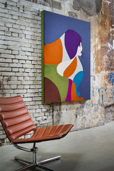 Ditmaal dus niet in kostuums voor een menselijk lichaam maar als nadrukkelijk aanwezige maatpakken in uw interieur of openbare ruimte. Geen schilderij maar een CouturedeMur, grote en centimeters dikke houten frames die worden aangekleed met een sobere of juist kleurrijke uitstraling. De CouturedeMur heeft niet alleen een voorkant, maar ook de achterkant en de zijkanten zijn gemaakt uit stof, het houten frame zit immer strak in het pak. De CouturedeMur is bovendien een prachtige oplossing voor ruimtes die akoestiekverbetering nodig hebben, ze dempen het geluid aanzienlijk. Wat niet onbelangrijk is, iedere CouturedeMur is en blijft uniek.