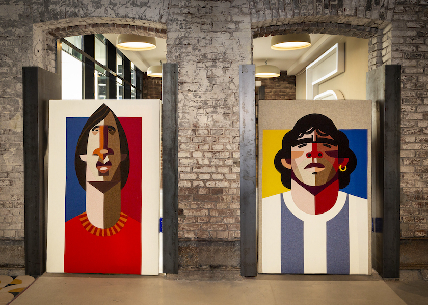 Ditmaal dus niet in kostuums voor een menselijk lichaam maar als nadrukkelijk aanwezige maatpakken in uw interieur of openbare ruimte. Geen schilderij maar een CouturedeMur, grote en centimeters dikke houten frames die worden aangekleed met een sobere of juist kleurrijke uitstraling. De CouturedeMur heeft niet alleen een voorkant, maar ook de achterkant en de zijkanten zijn gemaakt uit stof, het houten frame zit immer strak in het pak. De CouturedeMur is bovendien een prachtige oplossing voor ruimtes die akoestiekverbetering nodig hebben, ze dempen het geluid aanzienlijk. Wat niet onbelangrijk is, iedere CouturedeMur is en blijft uniek.